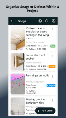 π Organized Projects: Manage snags, site works, and client details in one place.