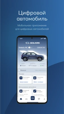 Приложение «Solaris. Цифровой автомобиль» обеспечивает максимальный комфорт благодаря интуитивно понятному управлению через мобильное приложение. Функции телематики позволяют Вам в реальном времени следить за состоянием машины, а автозапуск делает каждую Вашу поездку комфортной с первых минут.